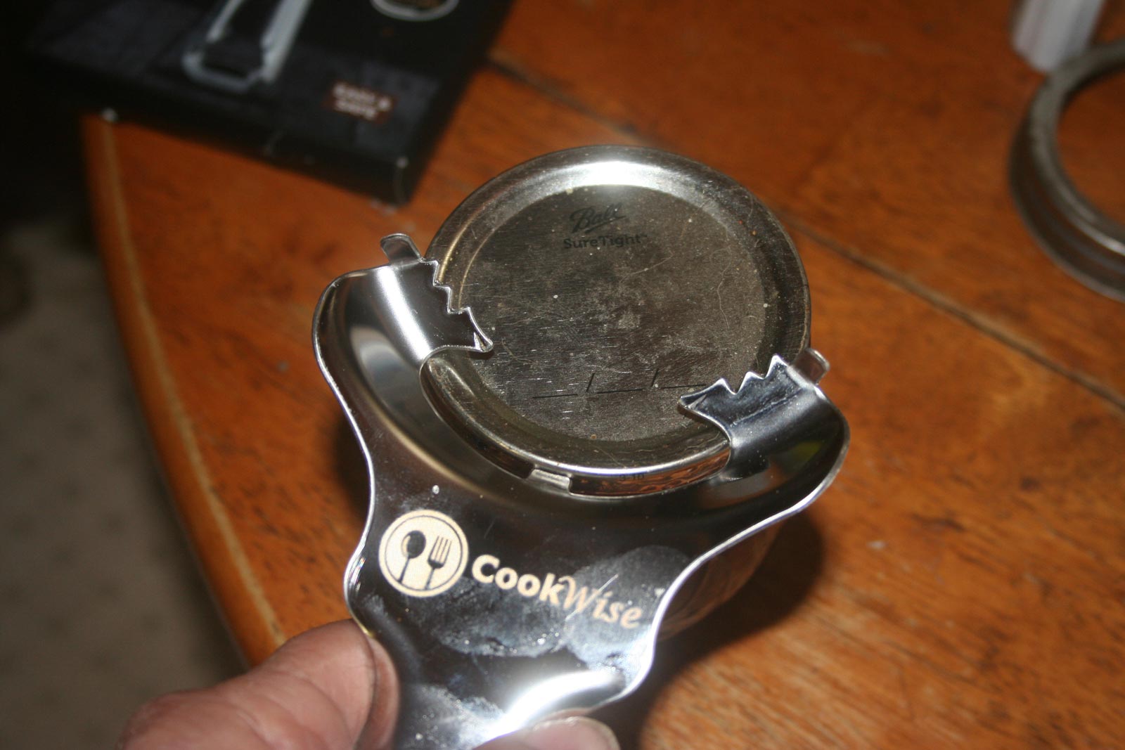 Today, our friends Dara and Sherri are here, and Sherri brought me a really cool lid lifter to remove the lids from many size jars, including canning jars. She knows I pry the lids off with my fingernails, often breaking them, sometimes painfully, in order to save the lids from dents in the rim. (Yes, I save them for emergency uses.) That lid lifter pulls the lid up with no effort (or broken nails!) and leaves them in pristine shape. Here’s the link on Amazon, where she got them. I had never seen one like that before! Very cool!