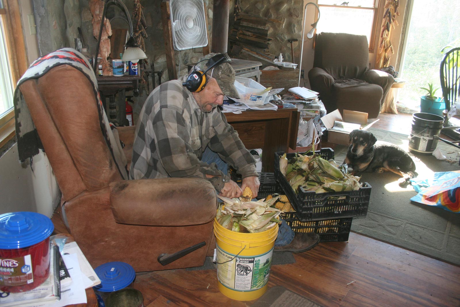 We hauled in boxes and crates of tomatoes. Then, yesterday, our friend Sherri came over to help pick the sweet corn. As the birds were starting to get into the Seneca Sunrise we save for seed, not only did we pick the sweet corn I’d planted to eat and can, but also two big patches of Seneca Sunrise too. We picked the North Garden, then drove over to the Wolf Garden and picked there. Thank God, it was a beautiful day. We ended up with several crates of each, plus the back of the golf cart/garden mobile full of sweet corn to can up. I guess I won’t be sleeping any time soon. Ha ha!
