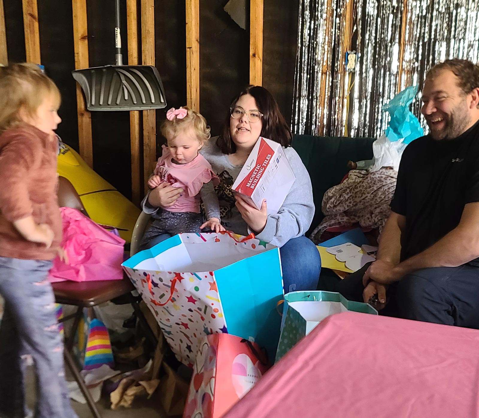 Melanie and sister, Delilah, really enjoyed the day, the gifts and the visitors, including aunts, uncles, nephews, and nieces, plus grandparents. It was so much fun watching her squeal and laugh, opening all her presents. But I think the most fun was when Grandma Karla got down the bubble machine and set it to making bubbles!