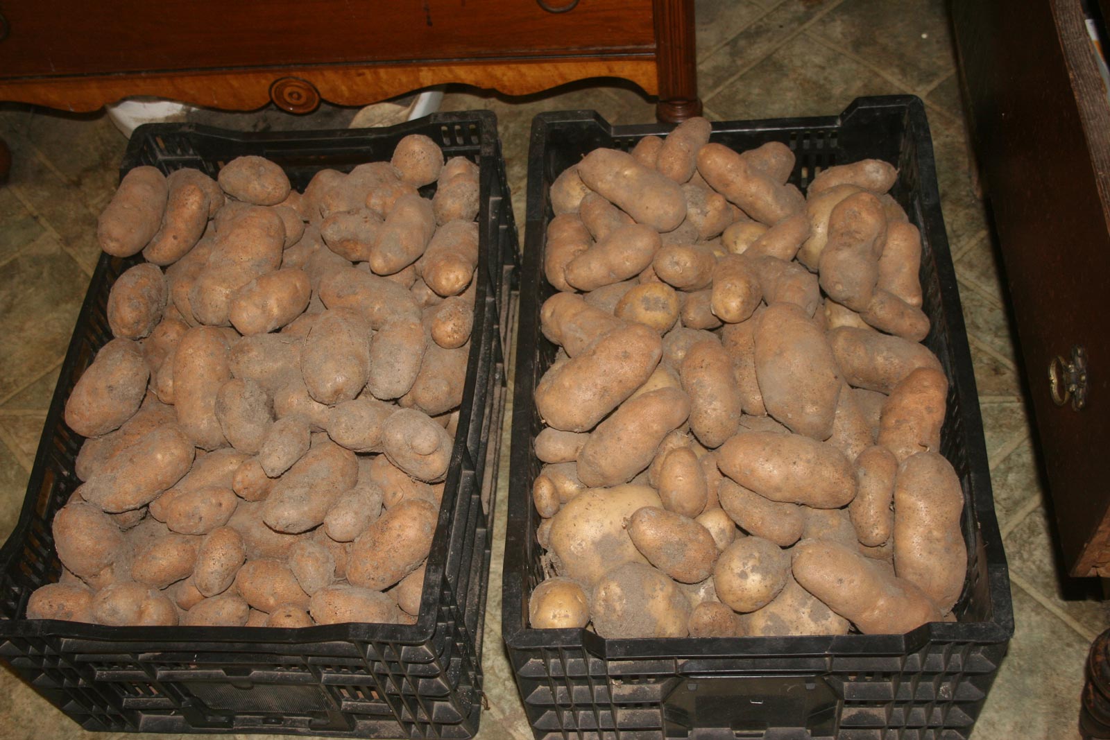 They went home with two big bags, two crates and a smaller bag full of potatoes. (Oh, Will tried the middle buster on the carrots so they could take carrots home too.) They were able to take about 2 gallons of carrots home too. Will didn’t dig all the carrots as we already have five crates plus of potatoes sitting in the entryway and bathroom, ready to put somewhere.