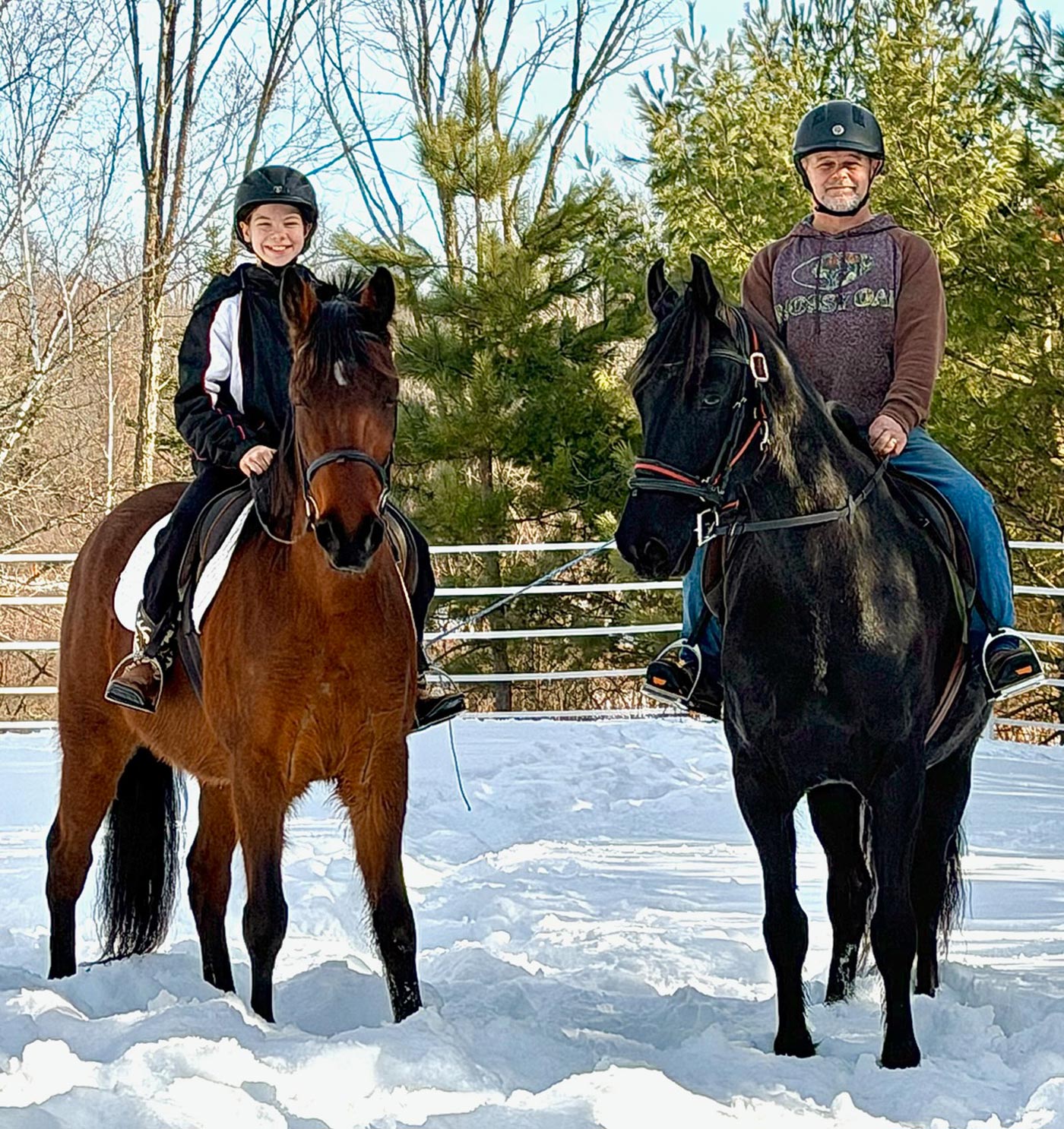 Son, Bill, and granddaughter, Ava, have been riding their horses in the new outdoor arena they made just before winter came. They had a good time!