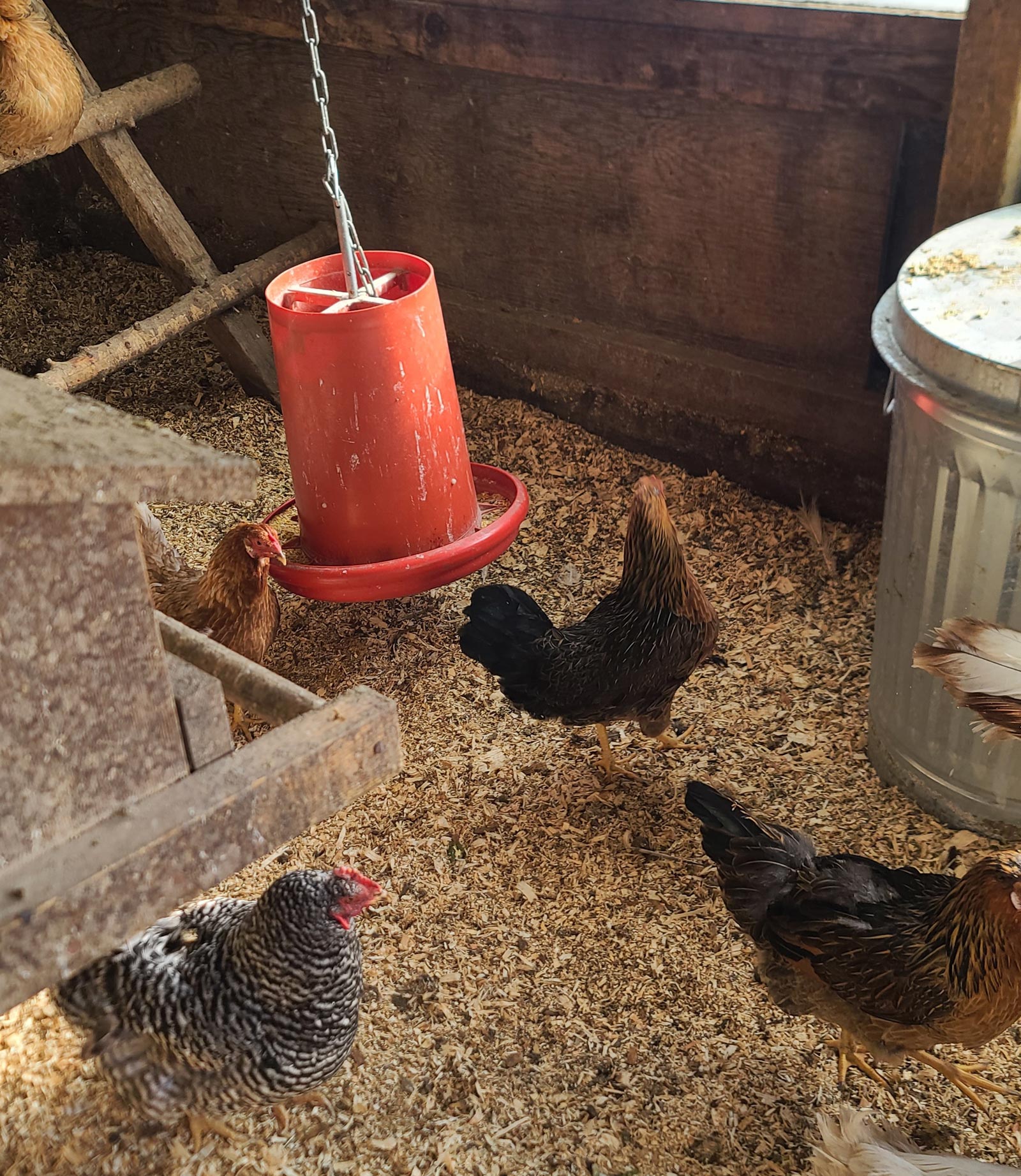 Drew got the chicken coop cleaned out a few days ago and bedded down with fresh pine shavings. The old shavings are now piled up out in the small garden next to the coop. When it thaws out, I’ll till them in and the garden will be oh so happy. The coop looks great and I’m sure the “girls” are happy too. We’re getting about 7 eggs a day as they’re starting to lay. When I went to Walmart today, the only eggs they had in the cooler were the expensive ones. All empty below. Holy cow!