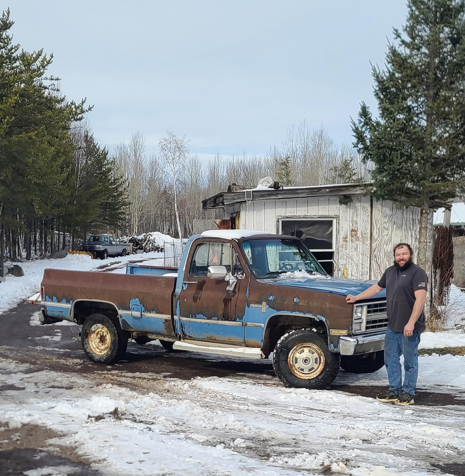 On Saturday, son, David came out. We had given him Old Blue, our trusty ¾ ton 1985 Chevy pickup, which was his dad’s and my old truck we’d moved here from Montana in 2004. It had been “retired” since 2017 and just sitting there, waiting for a rebuild. The paint was the old EPA approved stuff that slowly fell off. But the truck was a sweet runner and has no “modern” electronics on it. Will and David got it started, even with gas that was 9 years old, with no stabilizer added. It didn’t take much at all to get Blue started! It had kind of sunk in the ground so Will ended up having to give it a boost out with the Kubota as the clutch was wonky. But, once out, David drove it down to the end of the driveway and turned around, heading back. The clutch loosened up and Blue was “back in the saddle.” David is very happy!
