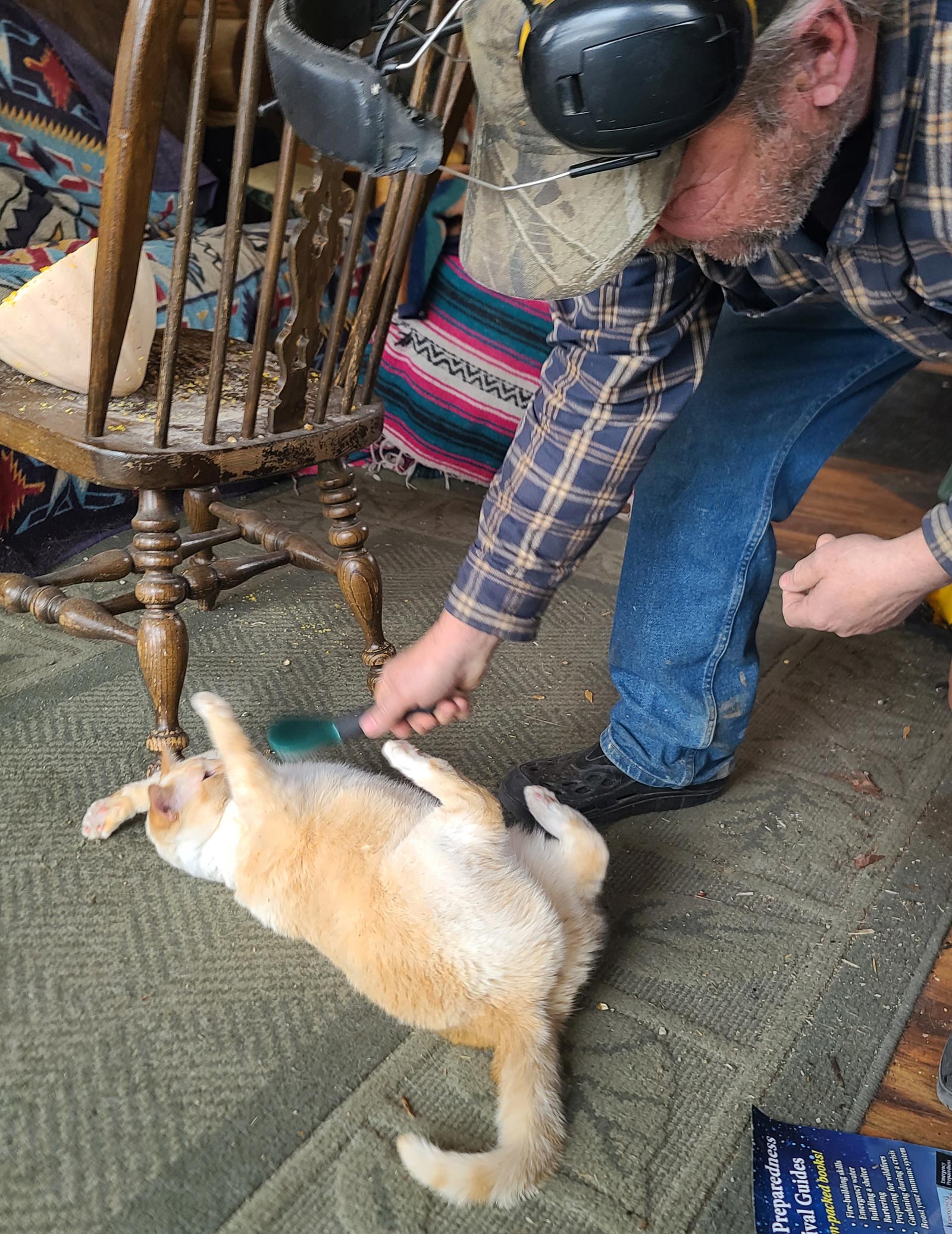 I have to laugh. Will and Drew have started brushing Buffy with a dog slicker brush. She sheds year-round so badly you sneeze when she’s on your lap. She sure loves it! I can’t believe the difference between her appearance now and when she was a tiny kitten. What a change!