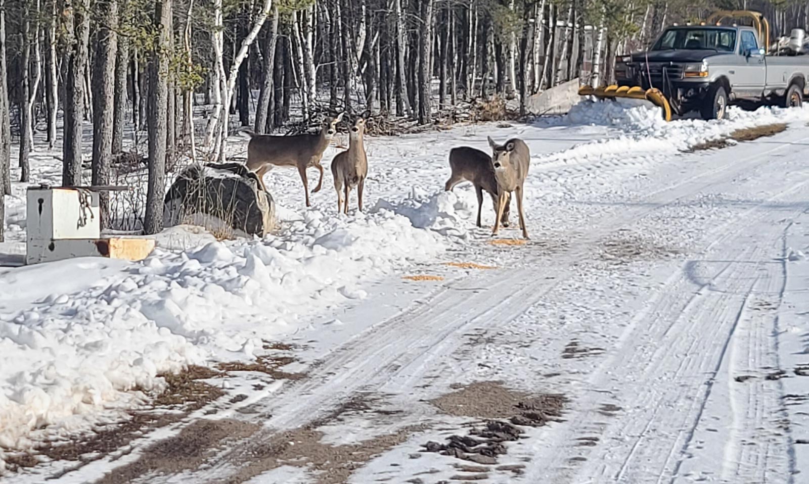 This morning, I fed the chickens and deer. The deer were already pacing around in the woods, waiting for me. We have four that come every day but yesterday, there were eight! We were sure tickled to see that many. The deer population is way down due to that nasty winter we got three years ago. Deep snow and a very late spring killed a lot of deer off. We fed “our” bunch, but a lot more, further away, starved. The DNR started feeding in March but by then, it was too late.
