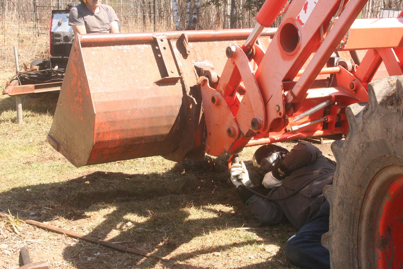 It’s 71 degrees outside with plenty of sun. Will and Drew are busy welding up the bucket for the big Kubota. The brackets which hooked it up had broken and we didn’t need it at the time. But, with spring comes equipment repair while waiting for the gardens to dry out enough to work in. As Drew is a welder by trade, Will can take a break and just be an advisor with the welding. But his experience keeps them on track for the fitting.