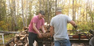 Well, yes, we were. Grandson, Drew, came up for the weekend and helped out a bunch. He and Will split a whole lot of...