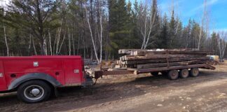 So, we're making good use of this nice weather. Will's out working on our small flatbed trailer. When we hauled the new golf cart...