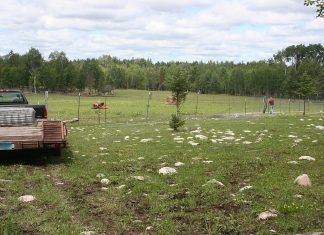 After months of site prep work, moving tons of gravel to raise the barn site and level it off, Will is finally ready to begin building! He had sixteen holes, four feet deep, bored...