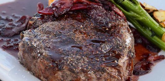 Grilled Steak with Olive-Blue Cheese Sauce