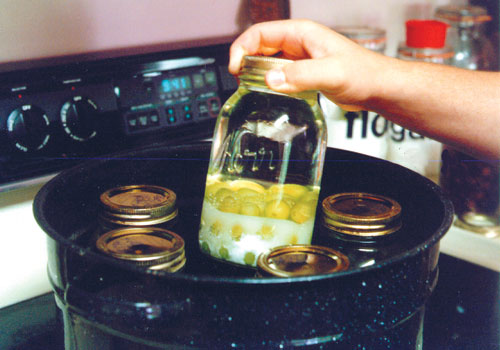 1. Wash and sterilize canning jars, lids, and rings. Fill water bath pan halfway with water to boil. At the same time, fill another pan with water to boil. This water will be added to the jars.